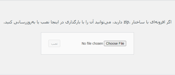 این روش زمانی استفاده می شود که شما فایل افزونه را از جایی به غیر از مخزن افزونه های وردپرس دانلود کرده باشید. ابتدا باید مانند روش اول در پیشخوان وردپرس به بخش افزونه ها یا Plugins بروید. در منوی باز شده بر روی افزودن یا Add کلیک کنید. در صفحه جدیدی که باز می شود در سمت راست بالا گزینه بارگذاری افزونه قابل مشاهده است. پس از آن کافی است افزونه خود را به صورت فایل ZIP در سایت آپلود کنید تا در بخش افزونه های شما قرار بگیرد و پس از آن نسبت به فعالسازی آن در قسمت افزونه های نصب شده مانند روش اول اقدام کنید.