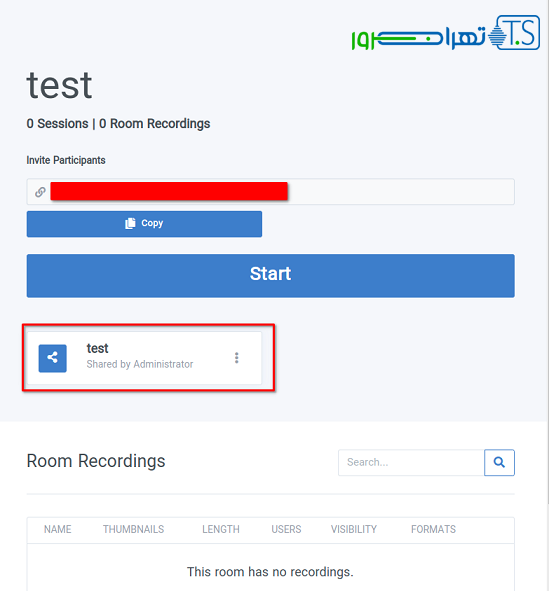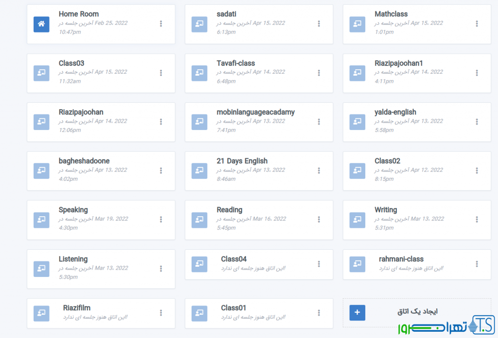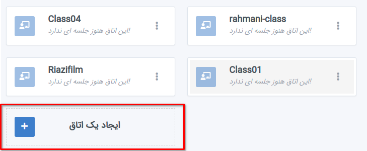 به صفحه اصلی پنل بازگردید و در انتهای صفحه بر روی گزینه ایجاد یک اتاق کلیک نمایید: