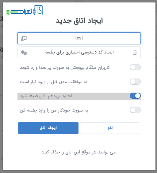 سپس بر روی ایجاد اتاق کلیک نمایید.