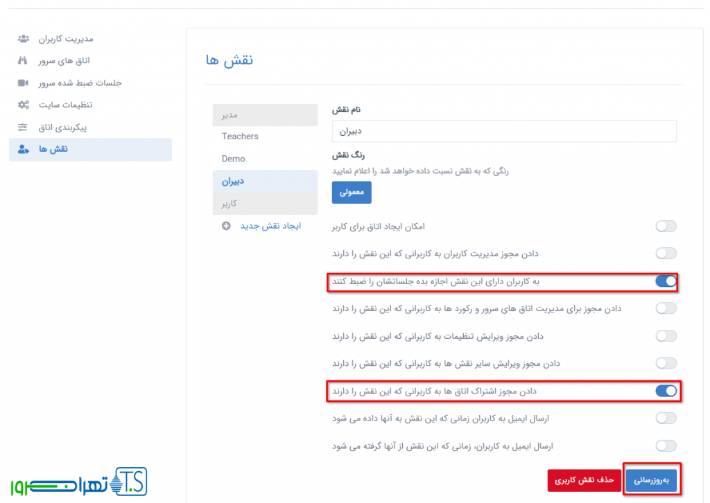 قدم اول: ایجاد نقش دبیران و دادن دسترسی های مناسب به آن ها