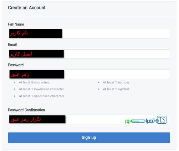 در صفحه بعد اطلاعات دبیر جدید را وارد و بر روی sign up کلیک نمایید: