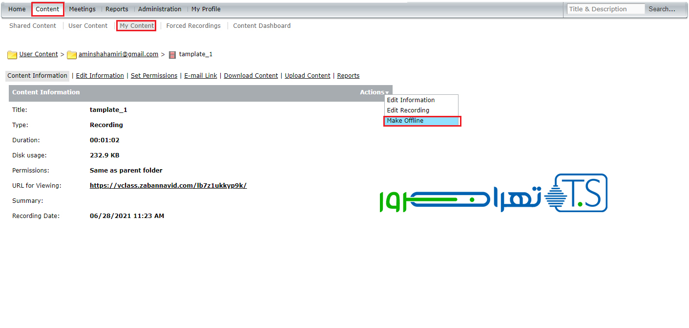 دانش آموز دسترسی به آن ندارد. هاست پس از دانلود ویدئو میتواند آن را به صورت آفلاین و یا