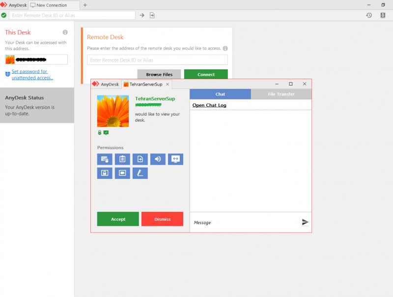 در صورت دادن پسورد خود وقتی کسی بخواهد به کامپیوتر شما متصل شود پیغامی به گونه زیر دریافت میکنید که در صورت accept کردن پیغام فرد به کامپیوتر شما متصل میشود :