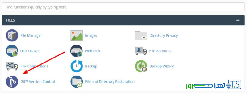 برای دسترسی به رابط Git، لطفاً به cPanel خود بروید و بر روی ابزار Git Version control که در قسمت Files قرار دارد کلیک کنید: