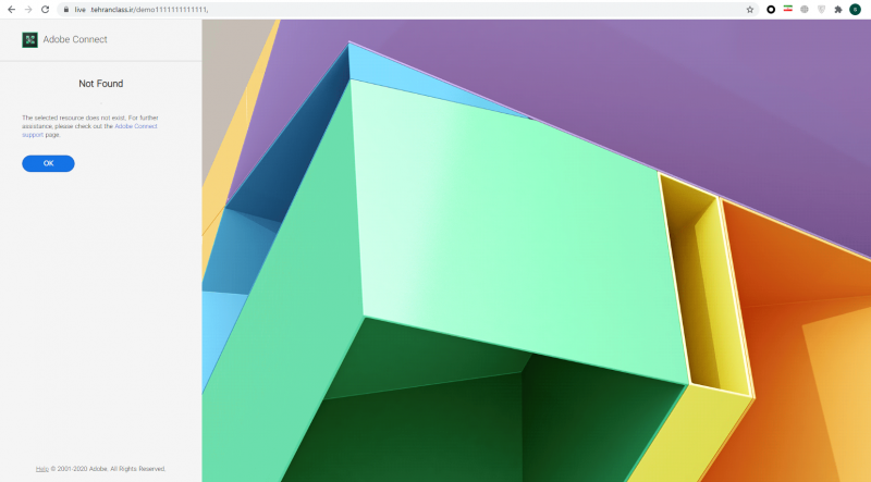 خطایی با جزئیات The selected resource does not exist. For further assistance, please check out the Adobe Connect support page که بیانگر عدم وجود کلاسی با این آدرس در بستر میزبان برگزاری