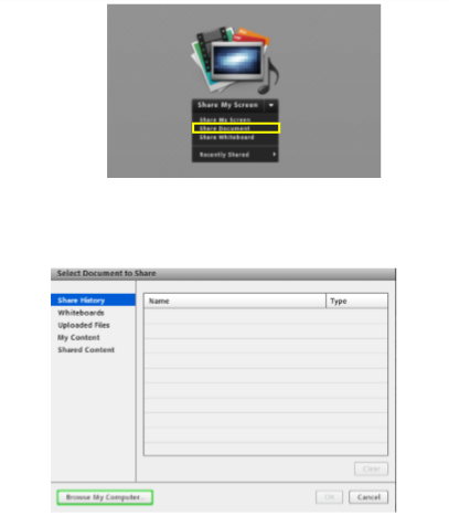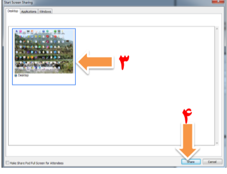برای اشتراک گذاری گزینه Share My Screen در صفحه کلاس را میزنید .همانطور که می بینید می توانید دسکتاپ – Document