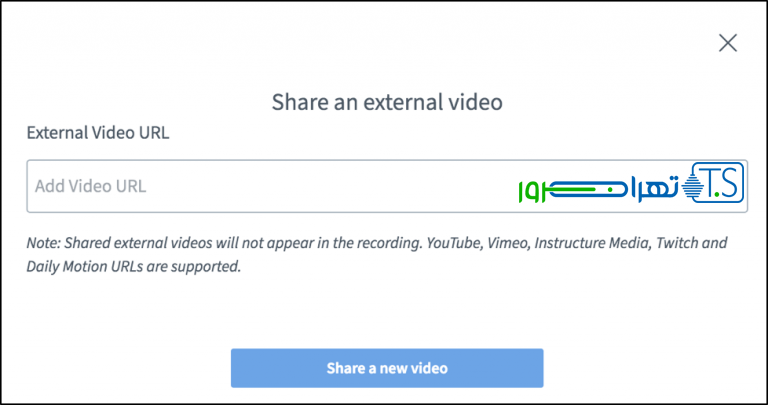 پنجره ای ظاهر می شود که شما را وادار می کند یک ویدیوی خارجی را به اشتراک بگذارید.