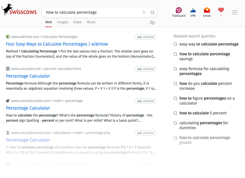 Swisscows یک موتور جستجوی حریم خصوصی است که در سال 2014 تأسیس شد. این موتور جستجوگر وب و فهرست خود را دارد، اما از Bing به عنوان منبع داده نیز استفاده می کند. ویژگی منحصر به فرد این سایت جستجو، تجربه خانواده محور آن است که نتایج جنسی را ایندکس نمی کند یا نشان نمی دهد. لازم به ذکر است که می توانید با نصب افزونه، Swisscows را به عنوان موتور جستجوی پیش فرض خود در کروم راه اندازی کنید.