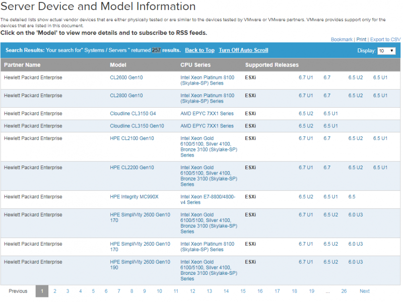 به عنوان مثال ، جست و جوی HCG برای HP تعداد ۲۵۷ نتیجه را بر می گرداند که شامل سرورهای Blade وRack – mount که توسط نسخه های مختلف vSphere پشتبانی می شوند،است.