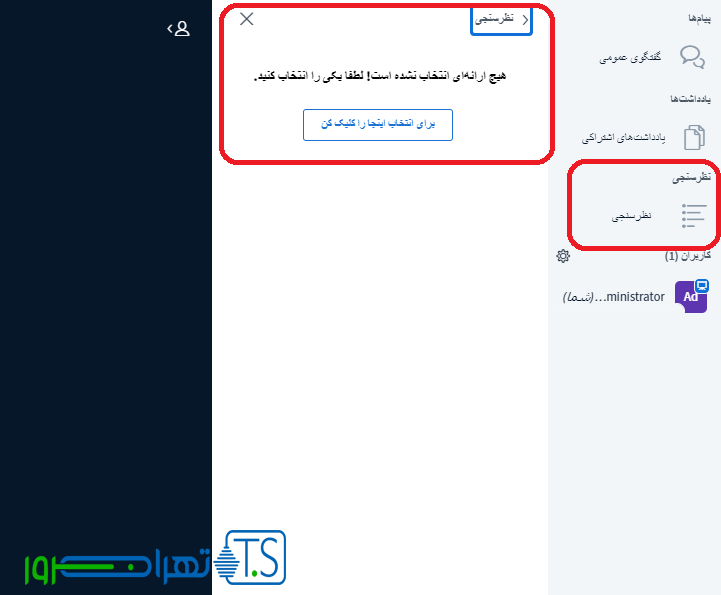 با انتخاب گزینه شماره ۲ مطابق عکس بالا، گزینه ی نظرسنجی در سمت راست کلاس برایتان ظاهر میشود که با کلیک کردن روی آن میتوانید پاد نظرسنجی را مشاهده فرمایید.
