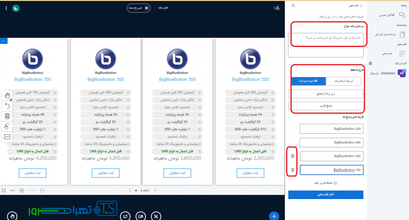 بعد از تکمیل کادر سوال، نوع پاسخ ها را مشخص کنید.