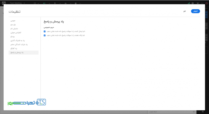 در زبانه “پاد پرسش و پاسخ” میتوانید نمایش نام ارسال کننده یا ارائه دهنده را فعال یا غیرفعال نمایید.
