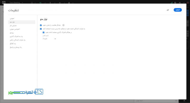 در زبانه “منو” می توان وضعیت دسترسی هایی نظیر اجازه استفاده از نشانگر بالا بردن دست را برای