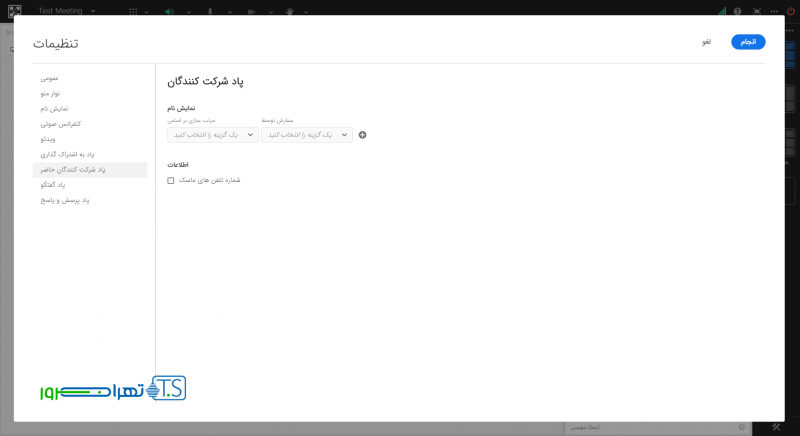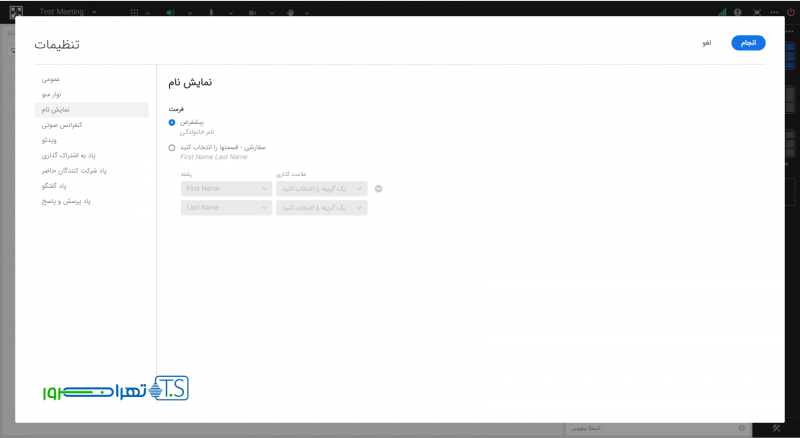در زبانه “نمایش نام” می توان فرمت نمایش اسامی در پاد شرکت کنندگان را به صورت سفارشی تغییر داد.