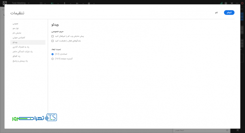 در زبانه “ویدئو” می توانید نسبت ابعاد ویدئوی در حال پخش را تغییر دهید یا تنظیماتی را بر روی میکروفن و