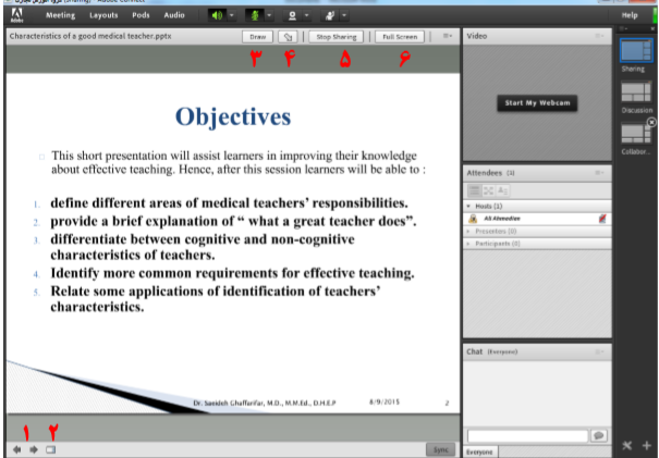 1. سلام در قسمت منوی میتینگ کلاس ، قسمت presentation را فعال کرده و پاد اشتراک گذاری را به ان قسمت بکشید