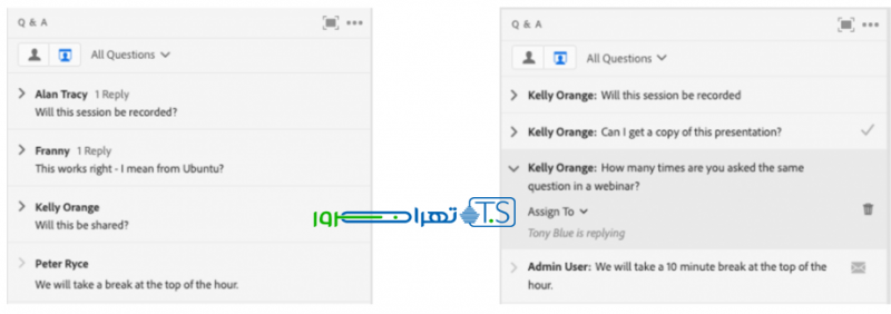 در تصویر زیر پاد Q&A را در نسخه ۱۱٫۰ و ۱۱٫۲ ادوب کانکت مشاهده می کنید.