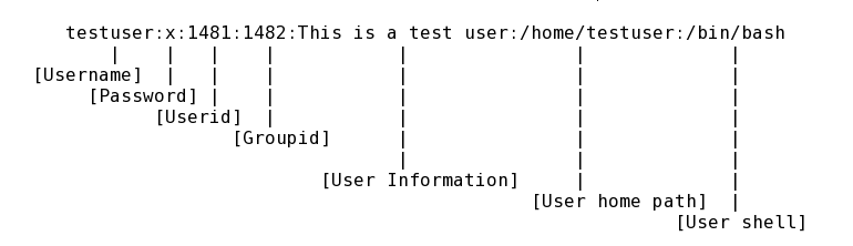 در بررسی فایل های بالا به اینصورت است که احراز هویت همه ی کاربران محلی سیستم عامل توسط این دو فایل انجام می شودکه در هر سطر آن مشخصات هر کاربر در زمان ساخت و پس از آن ذخیره میگردد.با اضافه شدن هر کاربر در سیستم یک سطر به سطر های این فایل اضافه میگردد.این بدان معناست که در این فایل ها به ازای هر کاربر یک سطر در نظر گرفته شده است.در فایل passwd هر سطر از ۷ ستون تشکیل شده است که اجزای آن به شکل زیر هستند :
