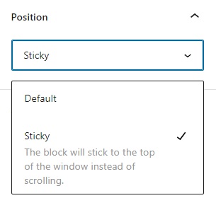 امکان جدید قرار دادن چسبندگی به شما این اجازه را می‌دهد که یک بلوک را در بالای نمایش کاربر چسبیده نگه دارید هنگامی که کاربران به پایین صفحه پیمایش می‌کنند. در حال حاضر، این ویژگی در بلوک‌های گروه، انباره و ردیف در سطح ریشه در دسترس است. شما می‌توانید از این بلوک‌ها استفاده کنید تا یک اعلان مهم را در وب‌سایت خود قرار دهید و آن را چسبانده کنید.