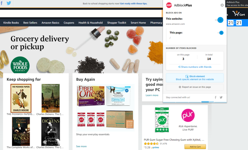 تبلیغات نمایشی به پر شدن حساب بسیاری از وب سایت ها کمک می کند. اما آن هایی که بهطور غیرمنتظره در مرورگر شما ظاهر می شوند می توانند آزاردهنده و مزاحم باشند. هدف افزونه AdBlock Plus متوقف کردن تبلیغاتی است که مرور وب شما را مختل می کنند. از جمله پاپ آپ ها، تبلیغات ویدیویی و تبلیغات بنری چشمک زن. پس از نصب AdBlock Plus، می توانید بدون همان انواع تبلیغات مزاحم که در گذشته شما را آزار می دادند، وبگردی کنید. اگر روی نماد AdBlock Plus در نوار ابزار مرورگر خود کلیک کنید، خواهید دید که چند مورد در سایت فعلی و چند مورد در همه سایت ها مسدود شده اند.