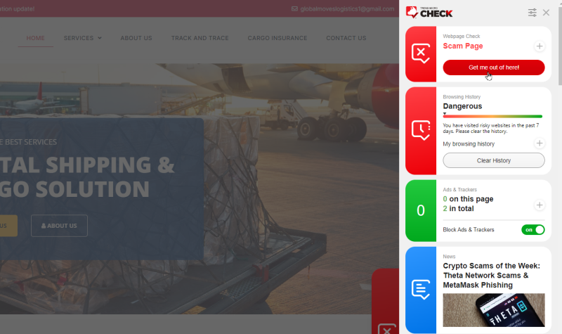 Trend Micro Check هر وب سایتی را که بازدید می کنید برای انواع مختلف محتوای مشکوک یا مضر تجزیه و تحلیل می کند. تبلیغات ناخواسته و مزاحم را مسدود می کند. و در صورت جستجو در یک سایت کلاهبرداری یا کلاهبرداری به شما هشدار می دهد. همچنین در صورت بارگذاری یک سایت فیشینگ یا مخرب که قادر به سرقت رمز عبور یا اطلاعات شخصی شما است، هشداری را نمایش می دهد. حتی می تواند با بررسی قابلیت اطمینان محتوای یک سایت خاص در برابر سایر منابع، از شما در برابر اخبار جعلی محافظت کند.