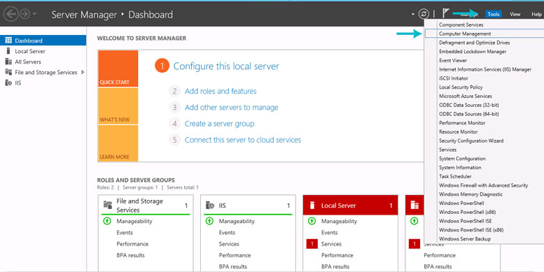 و در انتها بر روی گزینه “Tools”گزینه “Computer Management” کلیک فرمایید.