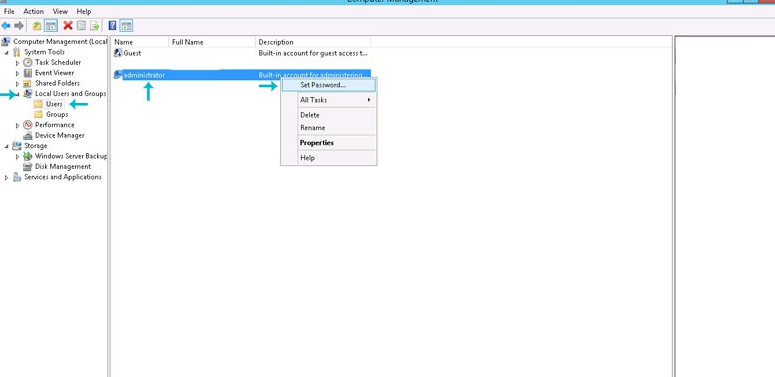 حالا شما بر روی یوزر “Administrator” راست کلیک کنید