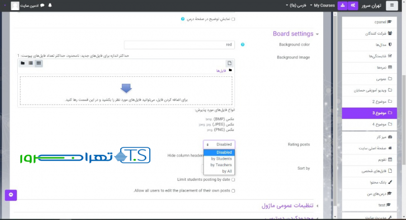 تنظیمات افزونه Board در LMS مودل