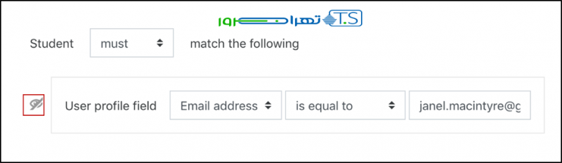 در سمت چپ قسمت نمایه کاربر ، روی نماد eyeball کلیک کنید تا لینک کلاس مجازی BBB از سایر کاربرانی که در این دوره ثبت نام کرده اند پنهان شود .