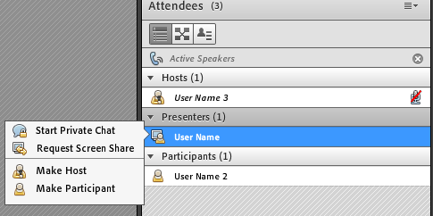 Host میتواند شرکت کننده را به presenter و بالعکس تبدیل کند.