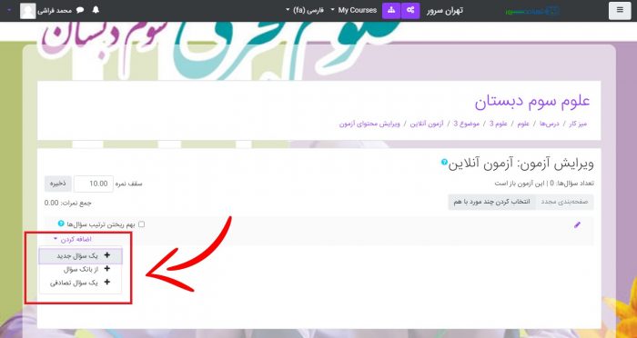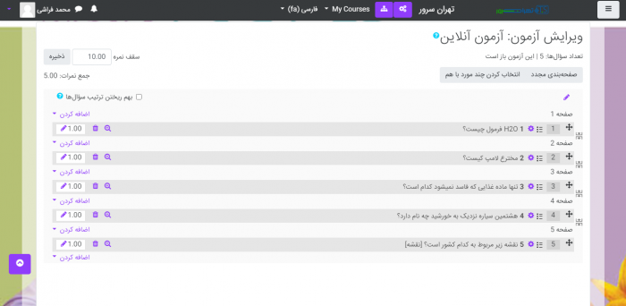 ساخت و ویرایش آزمون آنلاین چند گزینهای در مودل