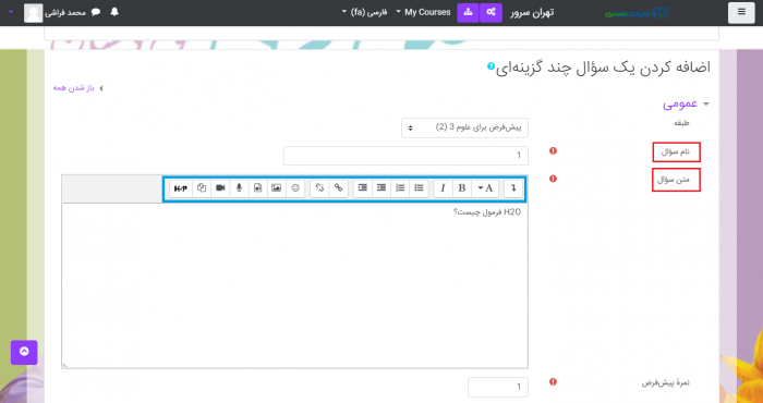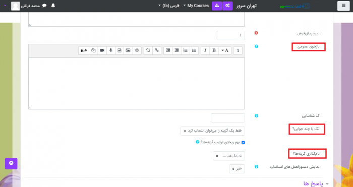 در بخش عمومی، میتوانید برای سوال خود در بخش نام سوال یک شمارنده مشخص کنید. در قسمت متن