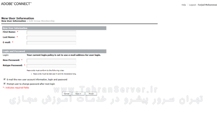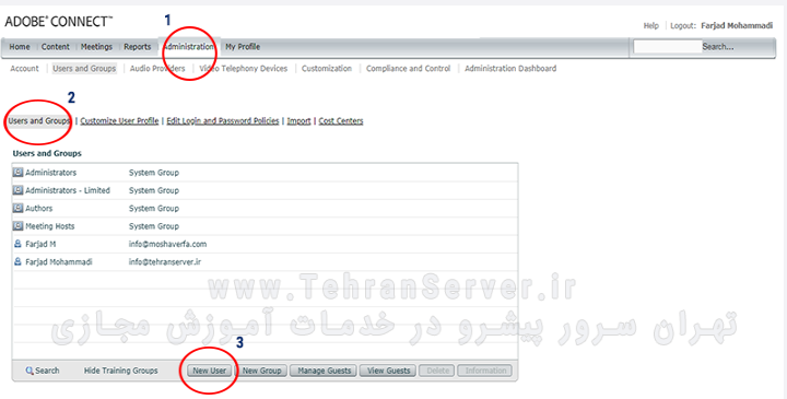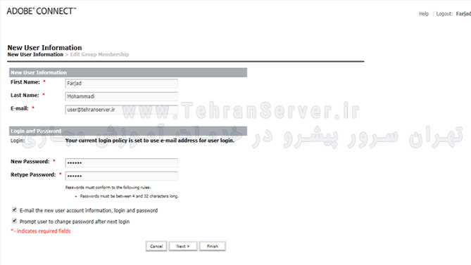 ساخت یوزر و نقش دادن به هرکدام در ادوبی کانکت