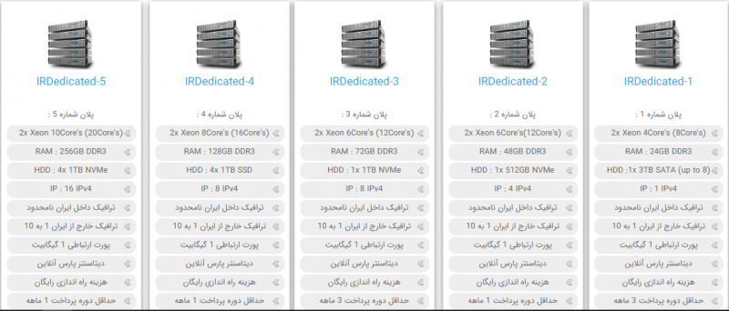 تهران سرور این سرویس را در ۵ پلان کاملا منحصر به فرد ارایه میدهد که هر پلان از نظر سی پی یو . هارد. رم .ای پی ویژگی های متفاوتی داردکه شما با توجه به نیاز و نوع کارتان میتوانید با مشاورین ما مشورت کرده و از پشتیبانی ۲۴ ساعته مابهره مند شوید و سرویس مناسب خود را خریداری کنید
