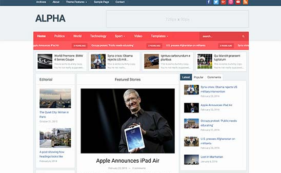 آلفا یک قالب قدرتمند چند منظوره وردپرس است که برای یک مجله آنلاین یا یک وبسایت غنی از محتوا مناسب است.