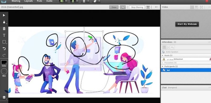 وب کم ادوب کانکت اینکار را برای شما اسان میکند . به راحتی میتوانید تصویر خود را به اشتراک بگذارید و وبکم شاگردانتان را روشن کنید تا انها را ببینید و از درست انجام دادن تمرین ها توسط انها مطمین شوید.