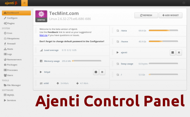 Ajenti، کنترل پنل اپن سورسی میباشد که دارای رابطی قدرتمند و سبک است.Ajenti هم پاسخگوی سرورهای کوچک و هم سرورهای اختصاصی هست.این کنترل پنل دارای پلاگینهای بسیاری مانند Apache، Nginx، MySQL، FTP، فایروال، سیستم فایل، Cron، Munin، سامبا، Squid و بسیاری از برنامه های دیگر مانند File Manager است که دست شما را برای مدیریت و کار با سرور باز میگذارد.