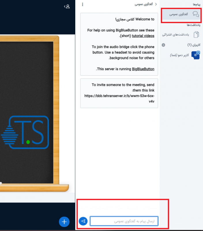 چت مشترک در بیگ بلو باتن فارسی