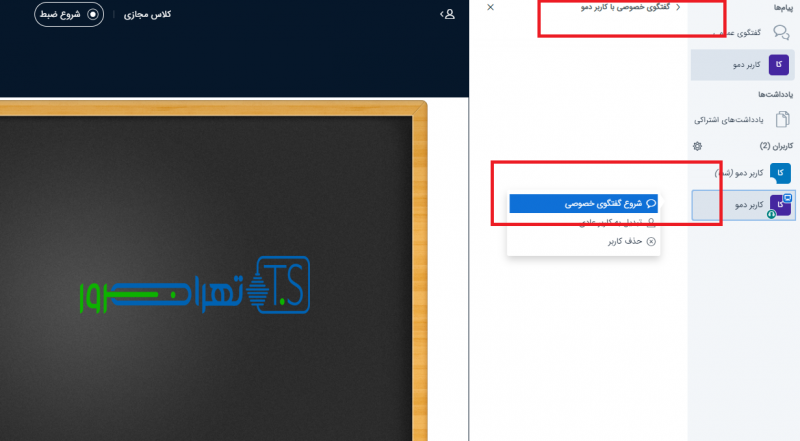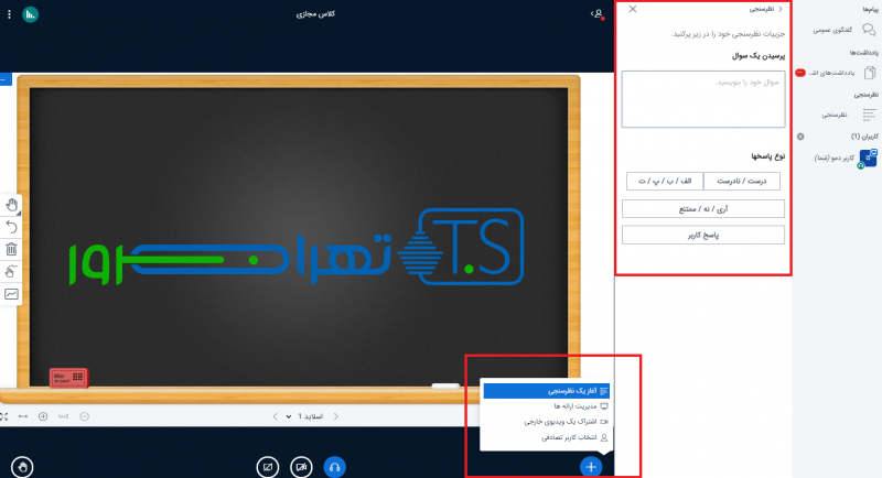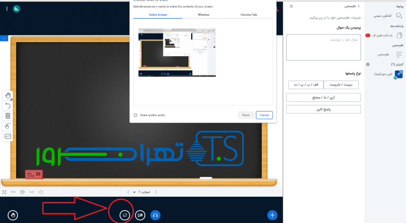 گزینه اشتراک گذاری صفحه در کلاس مجازی به مجری کمک می کند تا جلسات آموزشی را به صورت تعاملی و عملی تر توضیح دهد.