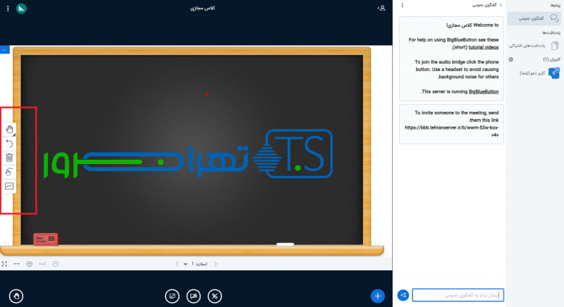 تخته سفید یا وایتبرد موجود در کلاس های مجازی، همانند تخته موجود در کلاس های فیزیکی و حضوری، از اهمیت زیادی برخوردار میباشد و میتوان گفت تخته کلاس پایه اصلی آموزش و کاربردی ترین ابزار در یک جلسه میباشد.