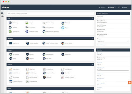 cPanel به شما امکان این را می دهد که وب سایت ها را منتشر کنید ، دامنه ها را مدیریت کنید ، فایل های وب را سازماندهی کنید ، حساب های ایمیل ایجاد کنید و …..