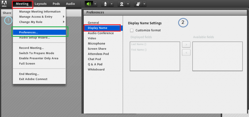 وارد meeting شده سپس در قسمت preferences ،طبق مراحل ذکر شده در عکس تیک گزینه customize format را غیر فعال کنید.