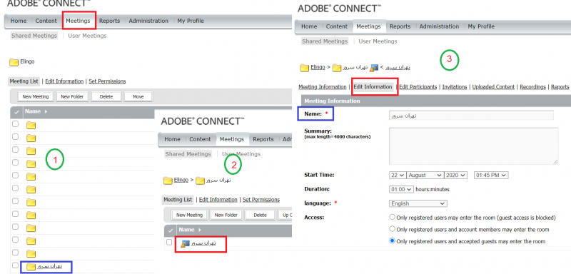 برای فارسی کردن کلاس مجازی ادوب کانکت خود میتوانید به تهران سرور تیکت زده و درخواست فارسی سازی کنید.
