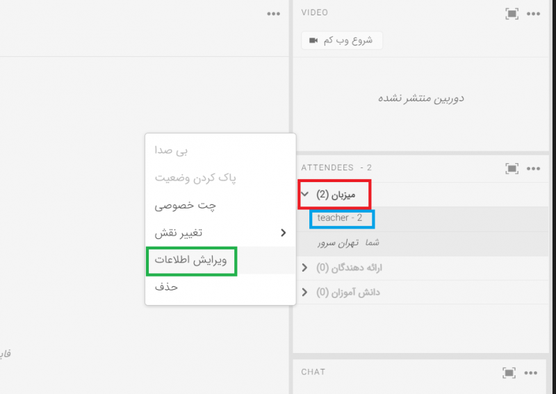 ویرایش نام کلاس و اسامی Host و دانش اموزان در کلاس مجازی ادوب کانکت