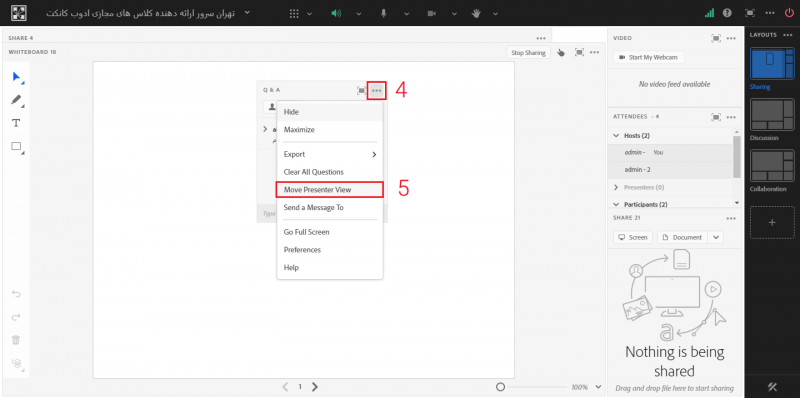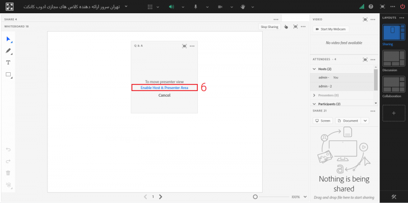 بر روی گزینه‌ی Enable Host & Presenter Area (شماره ۶) کلیک کنید تا نمای جدید و بزرگ برای شما