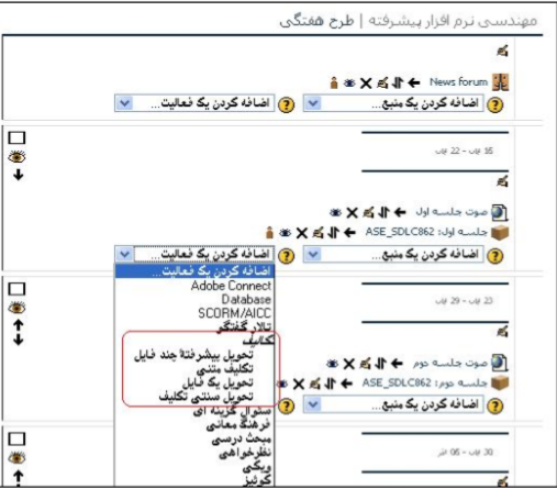 ﭘﺲ ﺍﺯان در هفته ﺁﻣﻮﺯﺷﻲ مورد نظﺮ، ﺍﺯ ﻣﻨﻮﻱ” ﺍﺿﺎﻓﻪ ﻛﺮﺩﻥ ﻳﻚ ﻓﻌﺎﻟیت” ﻳﻜﻲ ﺍﺯ ﻣدل های ﺗﻜﺎﻟﻴﻒ ﻛﻪ ﺩﺭادامه توضیح میدهیم را انتخاب کنید