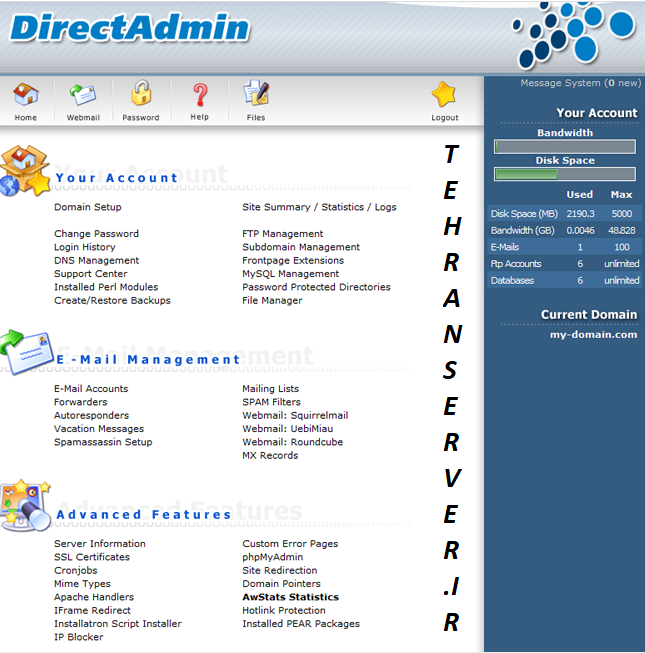 به راحتی صدها وب سایت ایجاد و مدیریت کنید. کنترل پنل DirectAdmin بسیار کم هزینه است و به یکی از محبوب ترین کنترل پنل های میزبانی وب تبدیل شده است. این نرم افزار تقریباً همه ویژگی هایی که نیاز دارید تا وب سایت خود را درهاست مشترک تنظیم کنید دارد.می توانید درمورد دایرکت ادمین در وب سایت شخصی خود دایرکت ادمین اطلاعات کسب کرده و ویژگی ها و مزایای آن را کشف کرده و حتی نسخه آزمایشی DirectAdmin را امتحان کنید.