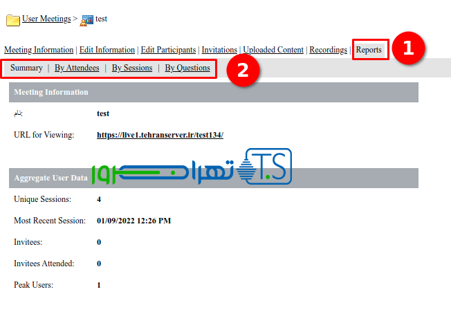 از منویی موجود، گزینه مدیریت اطلاعات جلسه را انتخاب نمایید تا به صفحه زیر منتقل شوید.