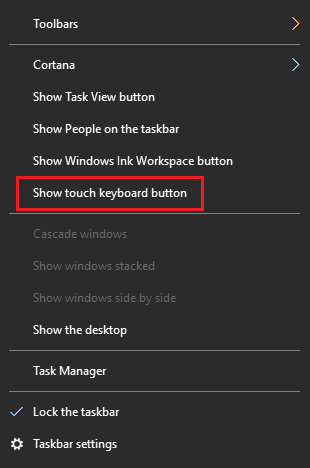 Show Touch Keyboard Button (تصویر شماره ۱) را فعال کنید. با فعال کردن این گزینه، آیکون کیبورد