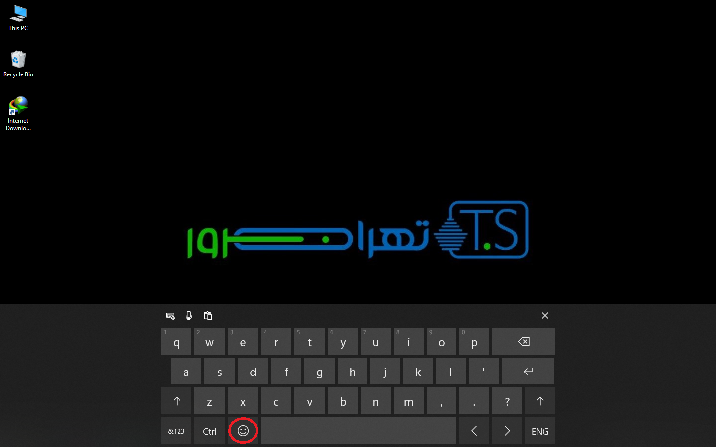 کیبورد مجازی برای شما نمایش داده میشود (تصویر شماره ۳) که کلید ایموجی در کنار کلید Space